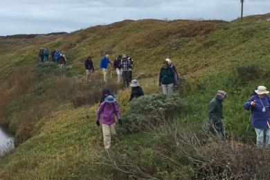 Two favorite hikes of ours are under the auspices of CSPA. Pescadero Marsh allows the senior group to engage in spectacular bird watching (use your Merlin ID app!) and feel a world away when you are incredibly close to Highway 1. Although parts of the beach area under the highway can be a challenge, much of the trails, especially the Sequoia Audubon and North Pond trails, have little elevation and provide benches at strategic points along the way. The town of Pescadero is close by for lunch and a bit of shopping.